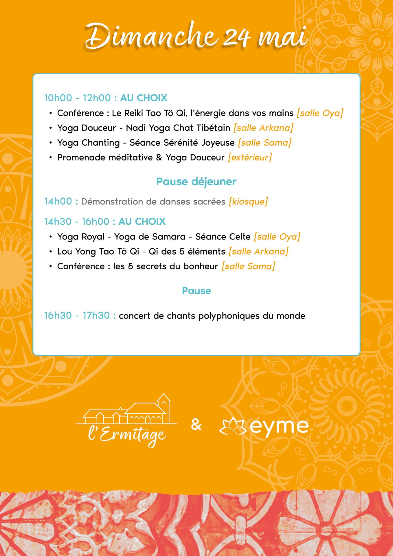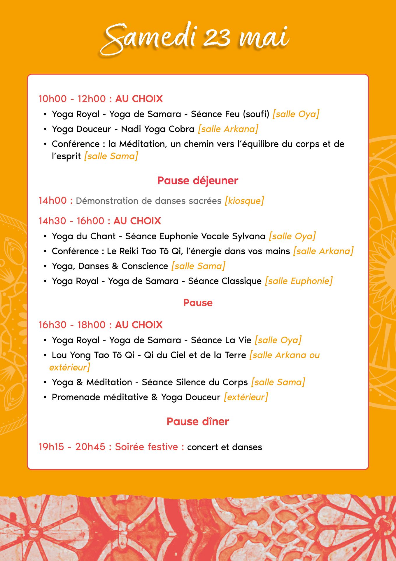 Pendant deux jours, vous allez découvrir différentes approches de yogas et méditations, des pratiques qui nourrissent le corps, apaisent le mental et réveillent l’énergie vitale.